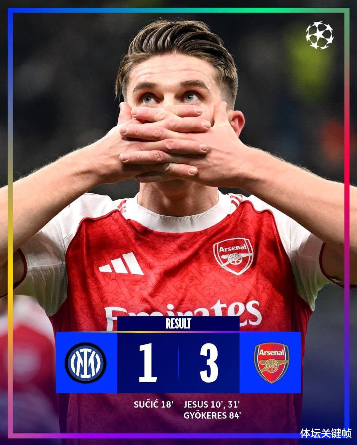 加布里埃尔・热苏斯打入 2023 年 11 月以来的首粒欧冠得分 ,连进两球助力阿森纳客场应战 战胜国际米兰,豪取欧冠八战全胜的战绩。