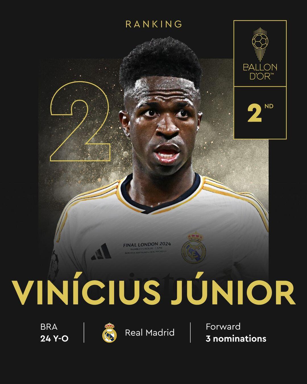 在金球奖的背景下,维尼修斯深知2024年是他绝佳的机会。这一奖项本可为其生涯加冕,如今却显得遥不可及。有了姆巴佩这位实力强劲的队友,他的获奖可能性急剧下降:两人虽然可以争夺同样的队伍 荣誉,但姆巴佩总能收获更多得分 并产生更大媒体影响力,古代足球 与奖项的规律似乎已不再青睐于他。