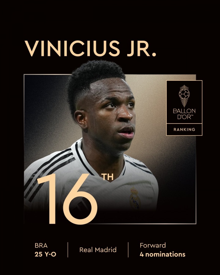 一年后,情况已是天壤之别。在2025年的金球奖评选中,维尼修斯仅位列第16名。这一暴跌残酷地反映了他近期的跑步路线:持续的竞技状态 低迷成为其职业生涯的转折点。自那次精神打击后,这位巴西球员再也没能找回昔日的自己。